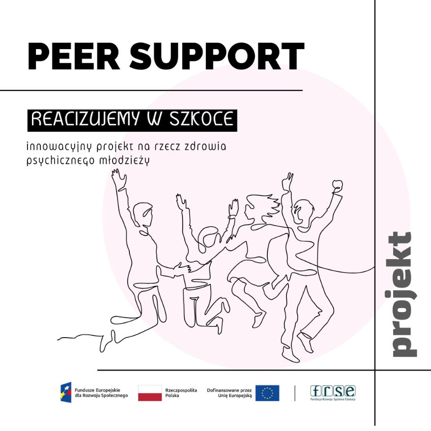 Projekt „Wsparcie rówieśnicze w zakresie zdrowia psychicznego młodzieży (Peer Support)” realizowany jest przez Fundację Rozwoju Systemu Edukacji w Partnerstwie z Ministerstwem Edukacji Narodowej i Fundacją „Instytut Edukacji Pozytywnej” w ramach programu Fundusze Europejskie dla Rozwoju Społecznego 2021–2027. Priorytet FERS.05 Innowacje społeczne, Działanie FERS 05.01 Innowacje społeczne.