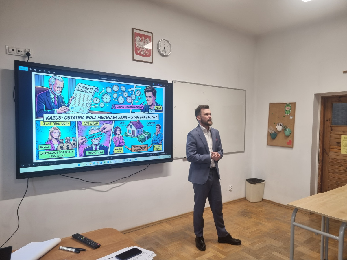 W ramach projektu ministerialnego związanego z obchodami Dnia Edukacji Prawnej w naszej szkole gościliśmy Pana notariusza Łukasza Kupisa. Spotkanie odbyło się z udziałem uczniów klas 2h i 3h i miało formę cyklu warsztatów.