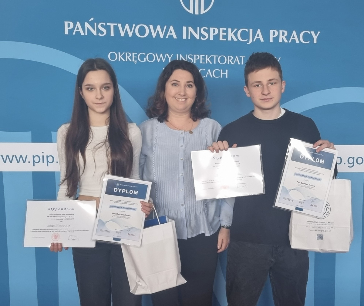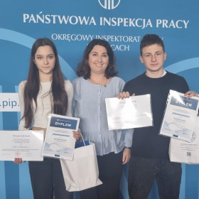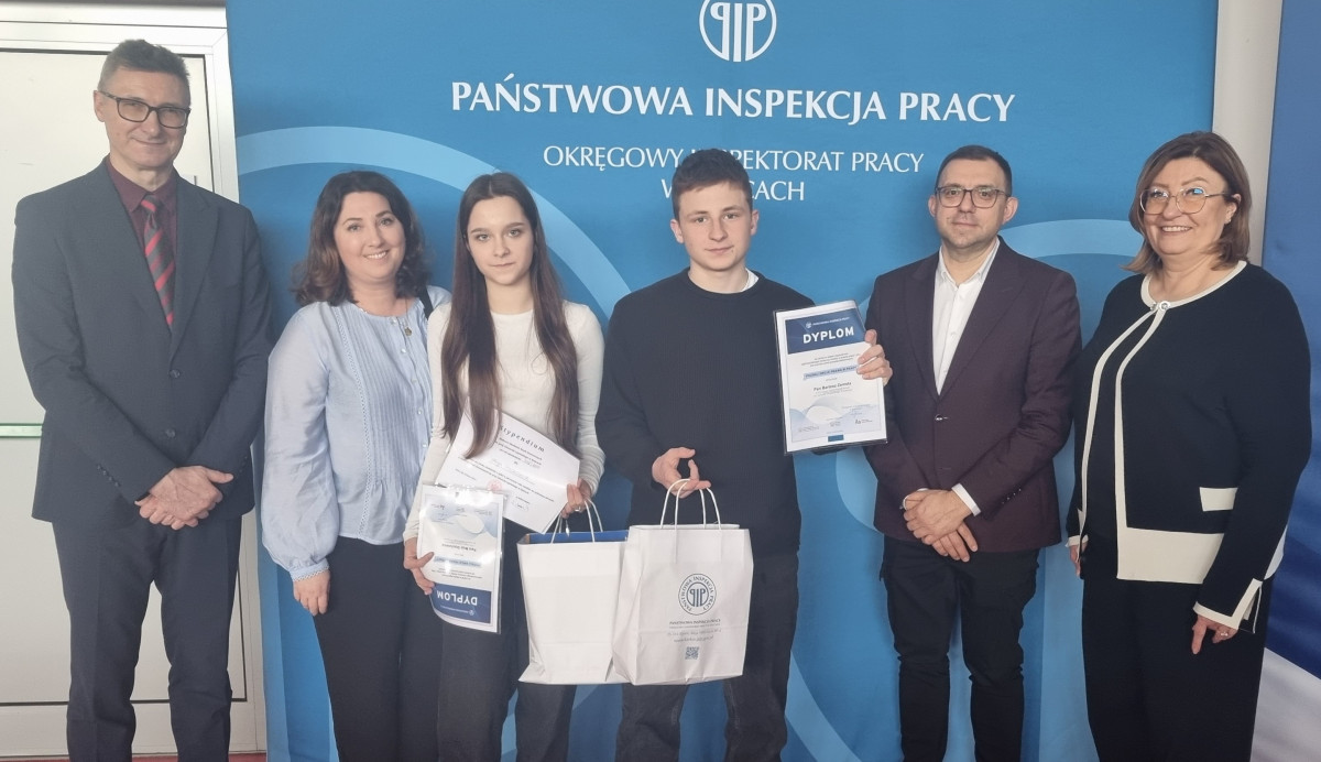 Serdecznie gratulujemy Mai Stachowicz 3D i Bartoszowi Zemście 3D, którzy reprezentowały szkołę w finale wojewódzkim konkursu Państwowej Inspekcji Pracy pt. „Poznaj swoje prawa w pracy”. Konkurs odbył się 10 marca 2026 roku pod honorowym patronatem Ministra Edukacji Narodowej a także przy udziale Kuratorium Oświaty w Kielcach. Maja zajęła 4 miejsce, Bartosz 10. Uczniowie zdobyli nagrody rzeczowe i stypendia.