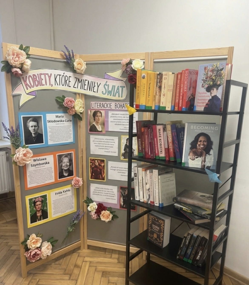 Za nami wyjątkowe dni świętowania Dnia Kobiet, które w tym roku upłynęły pod znakiem literackich inspiracji i kobiecej siły. Wspólna inicjatywa biblioteki szkolnej oraz Szkolnego Koła Sztukoterapii przyciągnęła wielu czytelników spragnionych wartościowej lektury.